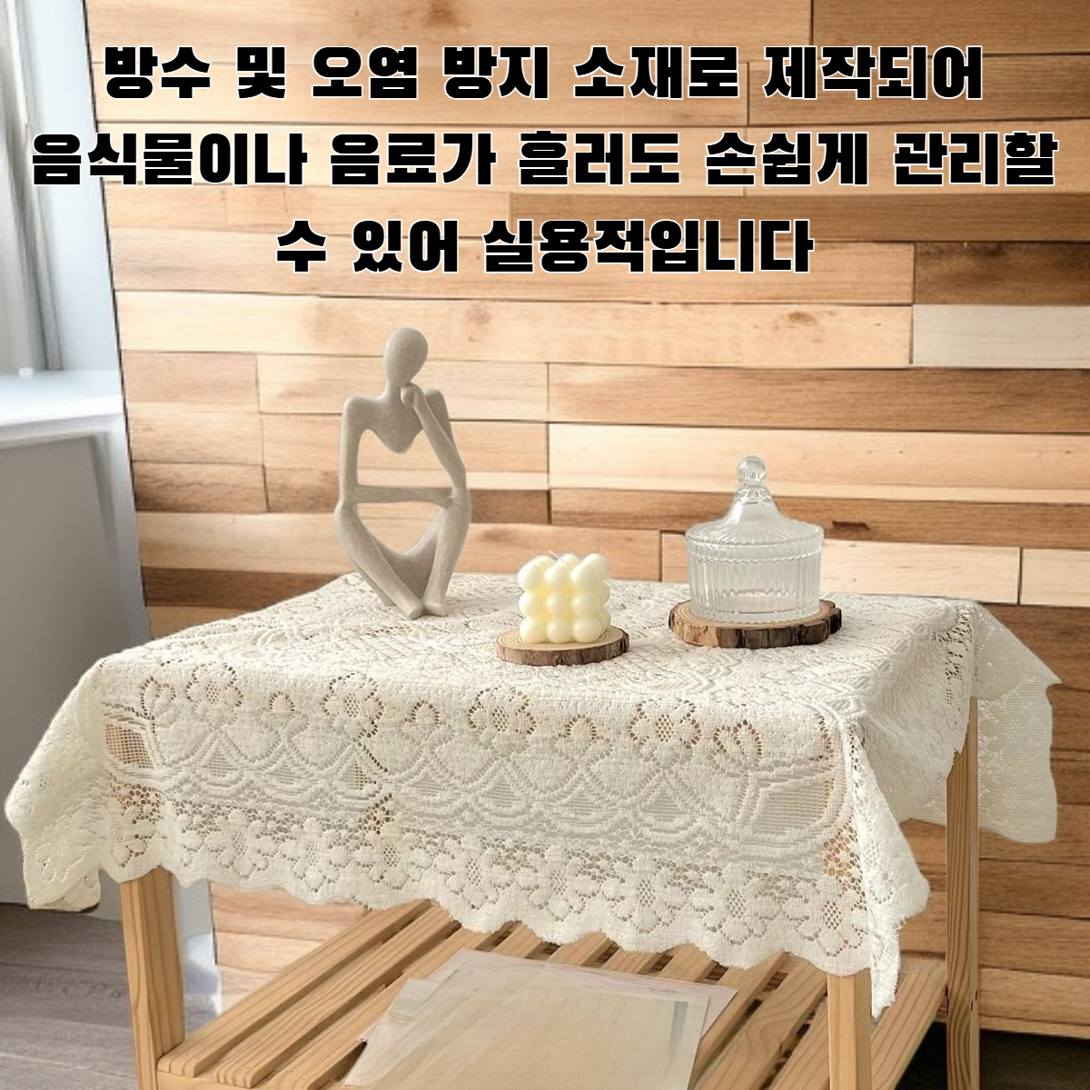 ● 고급 레이스 디자인으로 식탁 분위기를 한층 더 우아하게 연출하며, 집안 인테리어에도 자연스럽게 어울립니다. ● 미끄럼 방지 기능이 탑재되어 식탁 위 식기나 물건들이 쉽게 움직이지 않아 안전하게 사용할 수 있습니다. ● 방수 및 오염 방지 소재로 제작되어 음식물이나 음료가 흘러도 손쉽게 관리할 수 있어 실용적입니다. ● 다양한 사이즈와 색상으로 여러 종류의 식탁에 맞게 선택 가능하며, 손쉬운 세탁으로 편리하게 유지 관리할 수 있습니다.